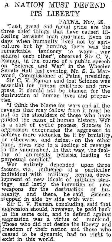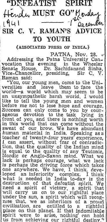 On 7 November 1888 was born the great physicist in tiruchirApallI in a traditional family. Remembering that great mind who went on to become the first non-white to be awarded a Nobel for Sciences, we reproduce here one old newspaper clipping: