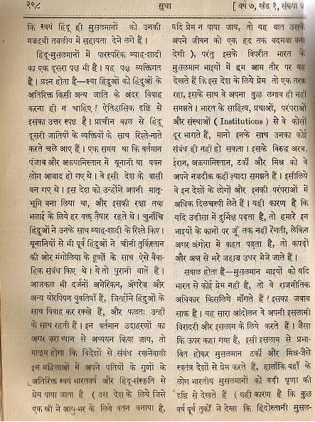 Posting below the scanned pages of an article that appeared in September 1933 issue of Sudha magazine. It is written by Shri Dharmaveer, the renowned journalist and Editor of Akashvani, about the so called Hindu-Moslem communal problem.