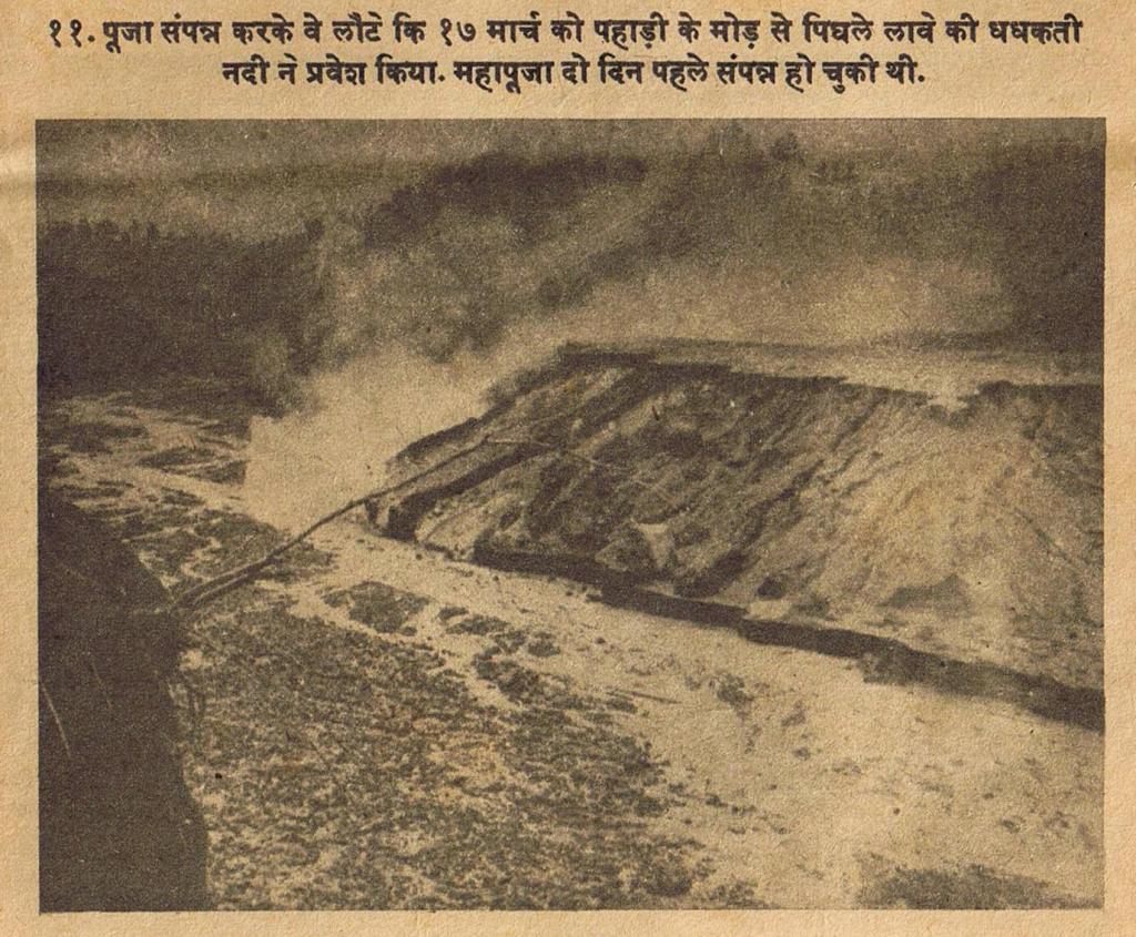On March 17, the burning flood of lava engulfed the entire region, two days after the mahApUjA was accomplished and concluded, and devotees evacuated. (Wiki says, the flood of lava came up to this place, but missed the temple complex merely by few meters. Overall, 1700 casualties were claimed by the 1963 volcanic eruption.)